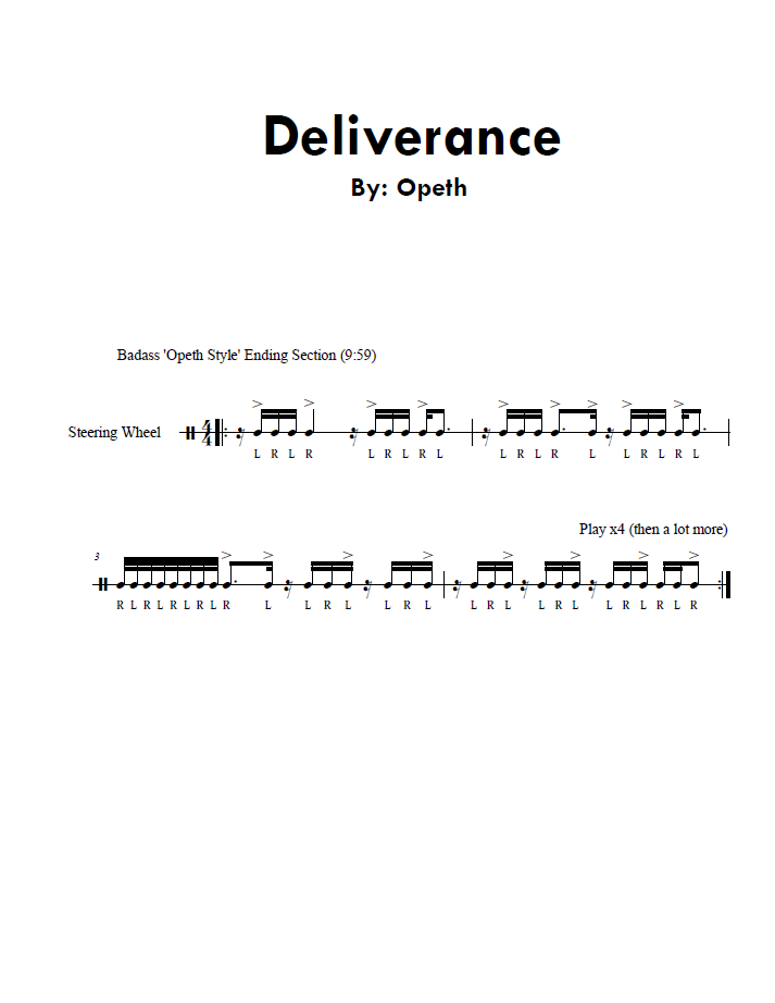 In the past, I’ve written out multiple posts for an assortment of songs, but now, I’ve decided to combine them all into one place! Below you’ll find several intricate rhythm sections of some of my favorite songs to bang out on a steering wheel. If you have any requests, feel free to contact me, and I’ll continue to update this post each time!