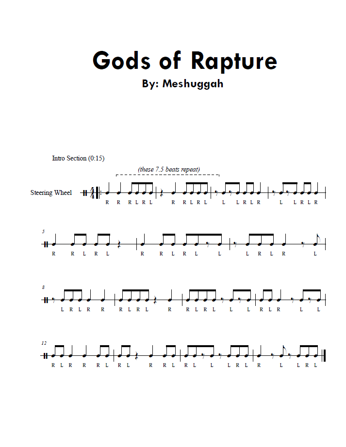 Meshuggah’s writing style rewards this kind of analysis. What sounds chaotic at first is actually built from extremely controlled repetition and layered metric ideas that gradually reveal themselves over time. This is exactly the type of material that benefits from slowing down and isolating rhythm away from pitch, which is the entire goal of these Steering Wheel Rhythms.