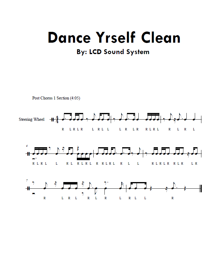Next up: Dance Yrself Clean by LCD Soundsystem (drums by Pat Mahoney).