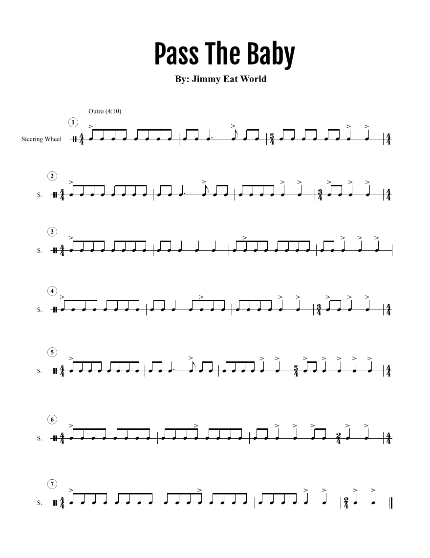 The first time I heard this was at a live show, and I did not expect this kind of rhythmic direction from Jimmy Eat World. The ending of Pass the Baby, from their album Integrity Blues, completely caught me off guard. It is one of those sections that feels deceptively simple at first, but quickly reveals a much deeper rhythmic structure once you focus on what is actually happening.