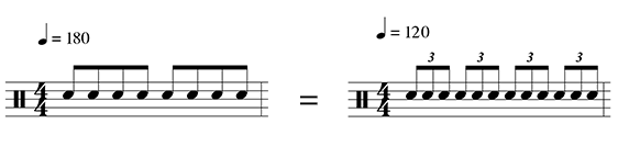 Eighth notes at 180 BPM = eighth note triplets at 120 BPM