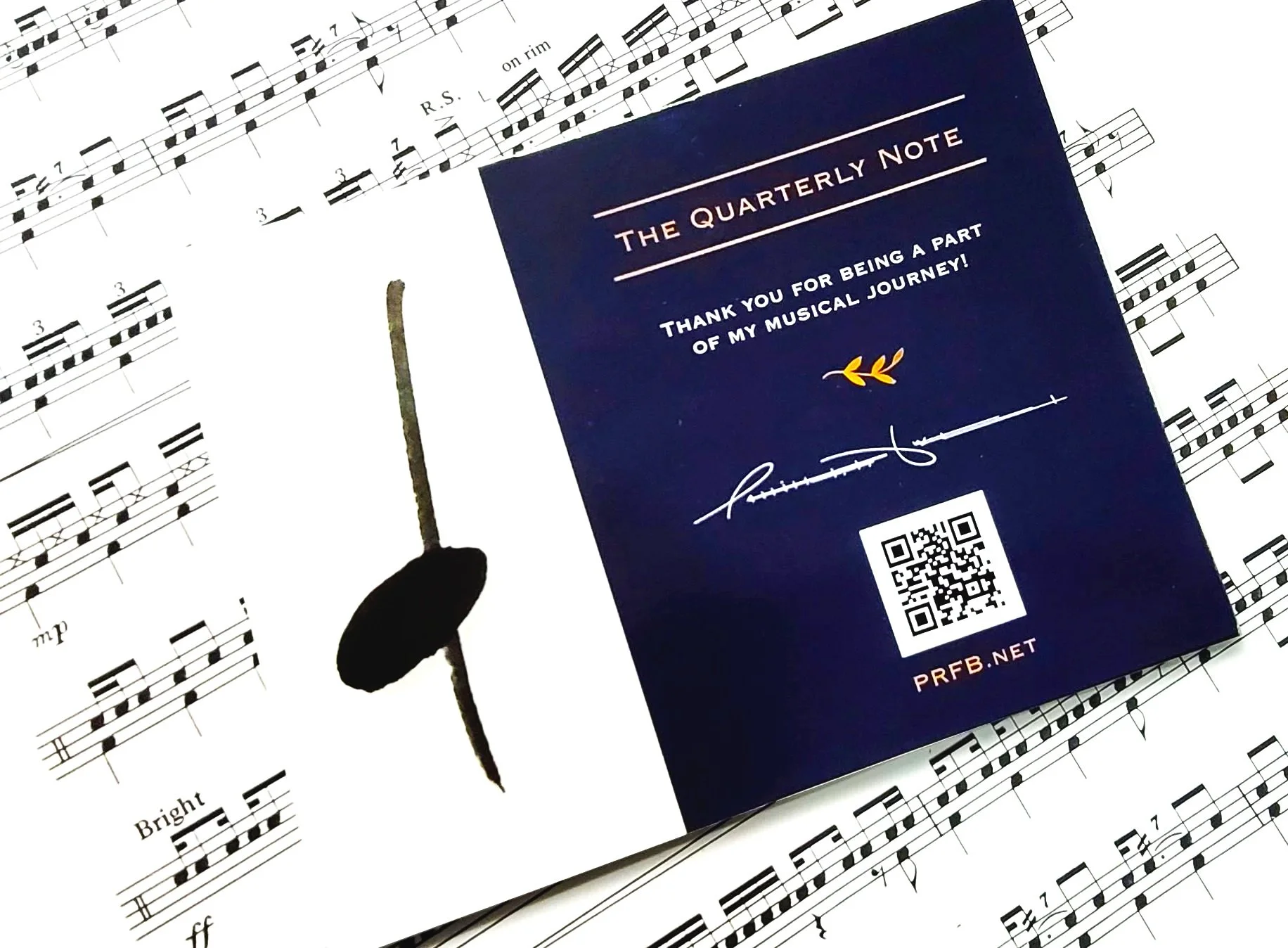 The Quarterly Note is my way of saying thanks and giving back to the drumming community in a small but meaningful (and fun) way. Each quarter, one lucky subscriber gets a prize: a handwritten, personalized note and a signed physical copy of one of the books from this site, inscribed just for you. The book is chosen at random and mailed directly to your door.